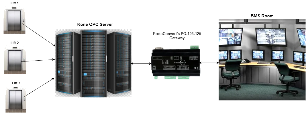 The Kone Elevator System supported OPC DA. While the third party BMS supported BACnet IP. Because the Elevator System and the BMS used separate protocols, it was impossible to connect them directly. Here is where our gateways come in handy: they convert essential protocols utilizing existing resources without requiring you to change your infrastructure, saving you money on the costs of replacing the entire system.