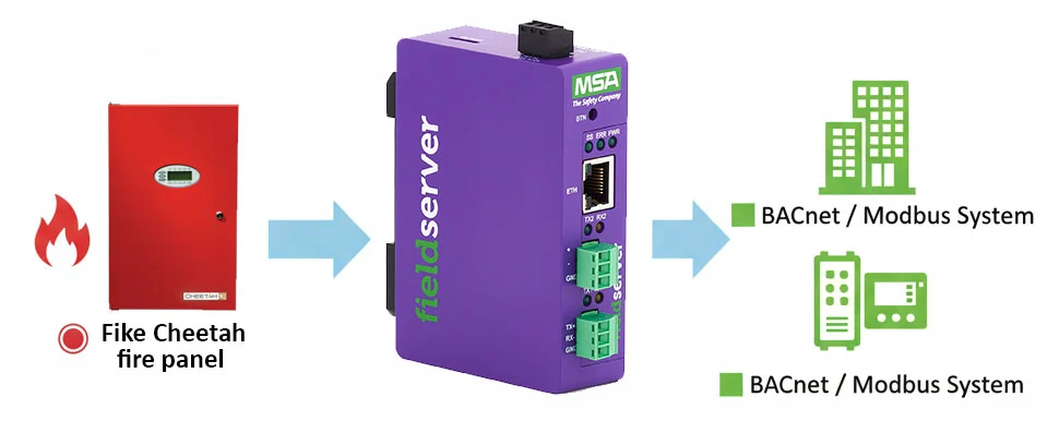 The gateway can be configured to behave as a client on both Fike Cheetah and BACnet / Modbus interfaces.